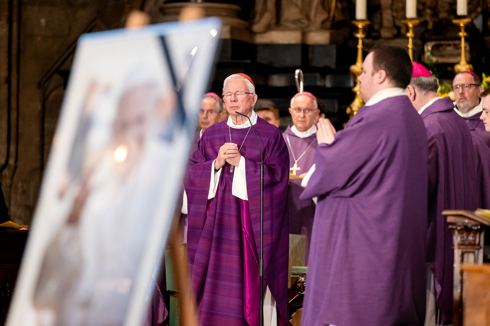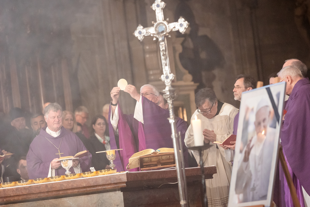 Mit einem "Requiem für seine Heiligkeit Papst Franziskus" nahm Österreich am Montagabend offiziell Abschied vom Papst. Dem Gottesdienst stand der Vorsitzende der Österreichischen Bischofskonferenz, Erzbischof Franz Lackner vor. Mit ihm konzelebrierten die heimischen Bischöfe. Die Politik war an erster Stelle von Bundespräsident Alexander Van der Bellen und Bundeskanzler Christian Stocker vertreten. Zahlreiche Gläubige gaben dem Papst im vollen Dom ebenfalls die letzte Ehre